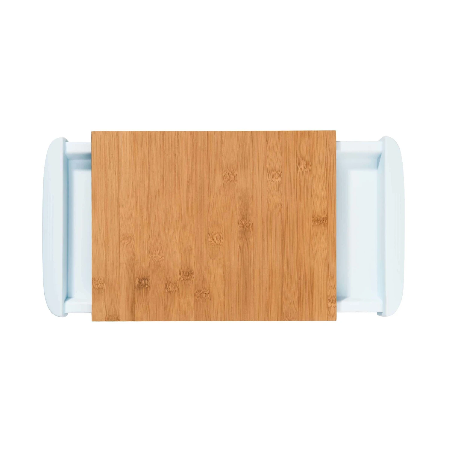 Das Bamboo Bambussbrett mit zwei Auffangschalen aus Kunststoff denkt als Küchenhelfer mit: Nach dem Schneiden lassen sich z. B. Kräuter, Gemüsestückchen oder Zwiebelwürfel schnell und einfach in eine der Schalen befördern – und stehen nun beim Kochen, beim Zubereiten oder am gedeckten Tisch griffbereit.
