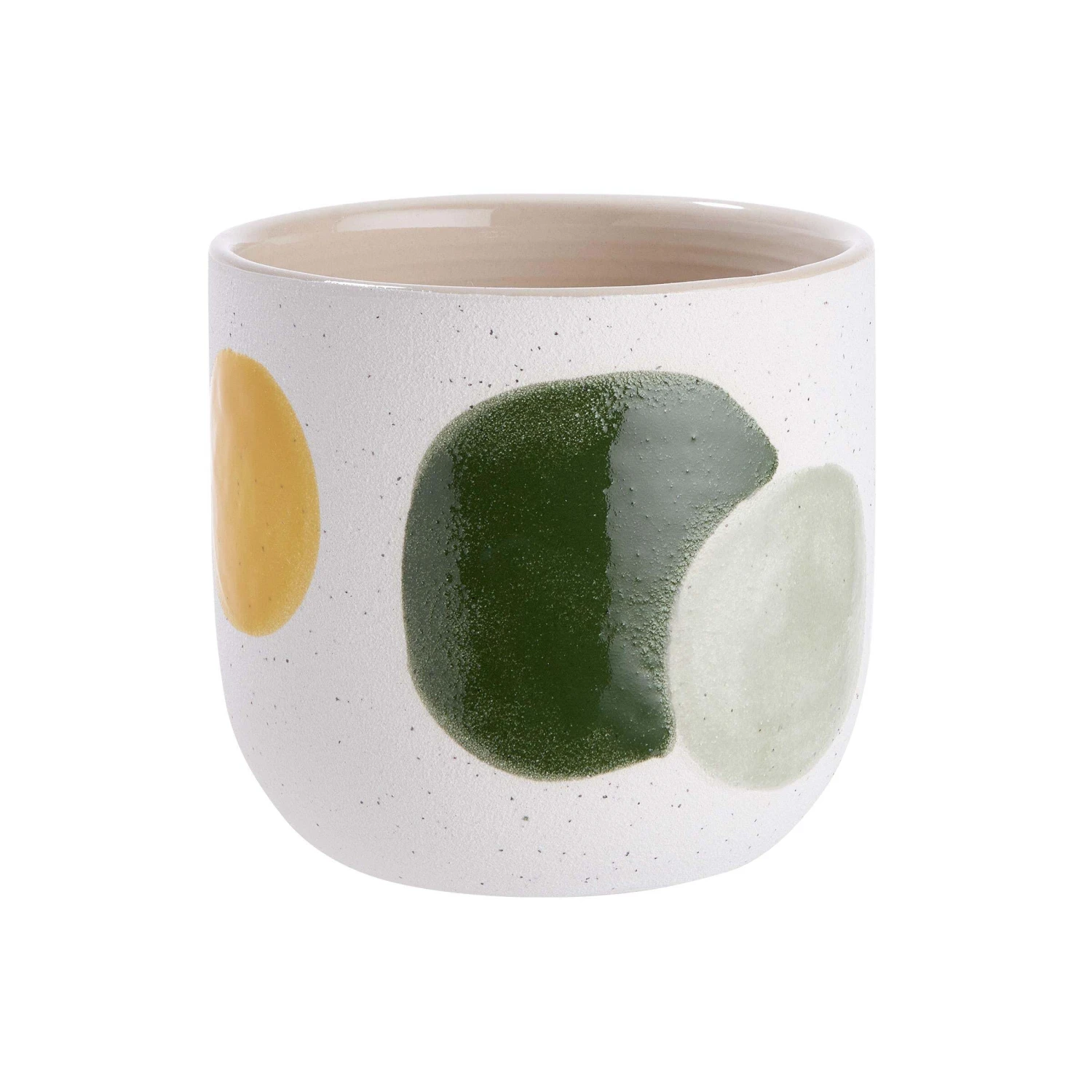 Organische Kreise im Stil der 70er Jahre zieren den bunten Seventies Blumentopf aus Steinzeug und feiern so ihr gelungenes Design-Comeback. Darüber freuen sich Sukkulenten, Kakteen und andere Topfpflanzen ebenso wie Ihr hübsch eingerichtetes Zuhause. Oder Sie integrieren den Blumentopf mit Pflanze in Ihre Tischdeko und setzen damit besondere Akzente. In einer weiteren Größe erhältlich.