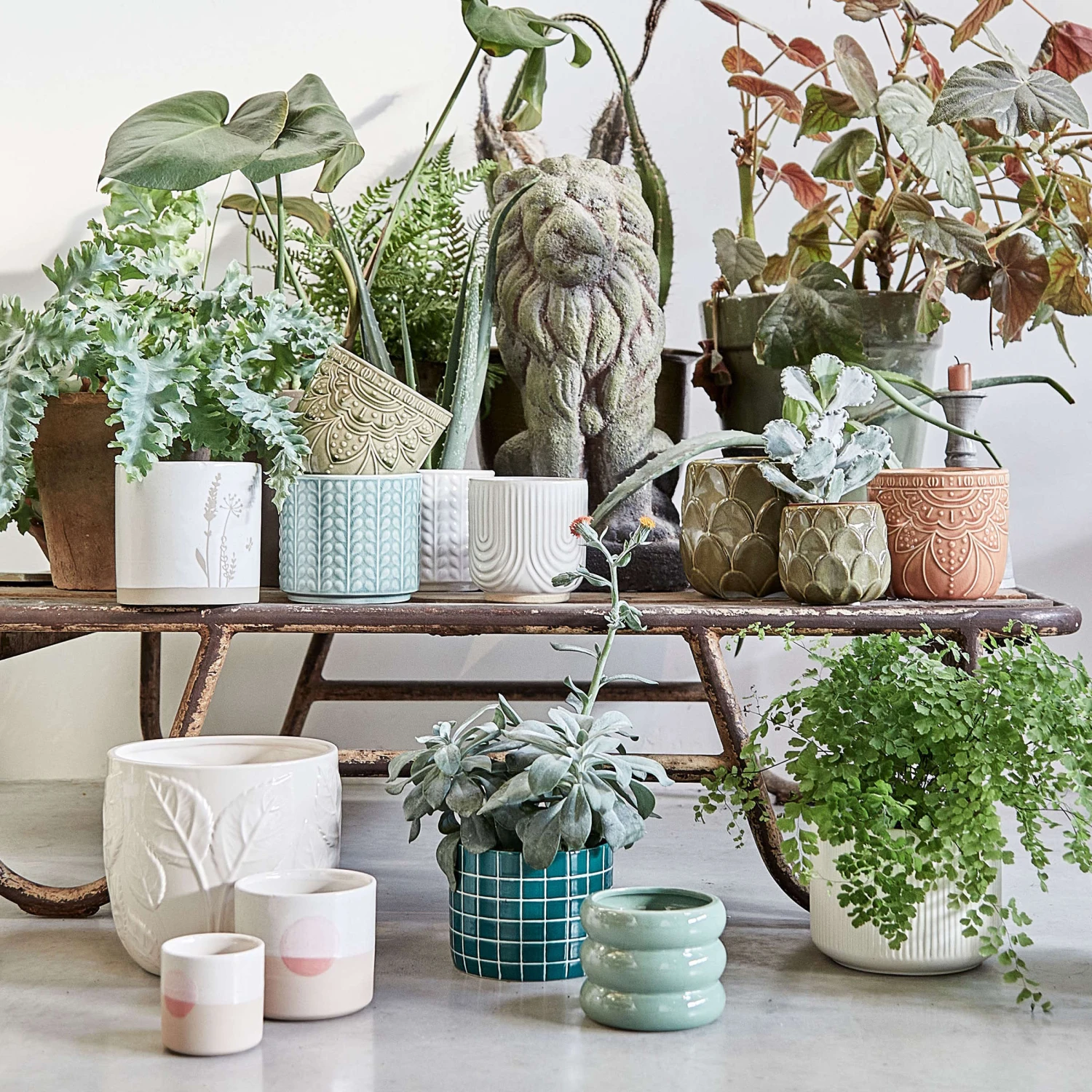Mit seinem schmückenden Ornament kann sich der Marrakesh Blumentopf aus Steinzeug wunderschön auf orientalischen Tabletts aus Holz oder Metall und auf opulent gedeckten Tischen sehen lassen. Dabei harmoniert er mit Windlichtern, Laternen und Vasen im orientalischen Stil als weiteren Deko-Elementen. Erhältlich in Salbei und Orange, ideal auch zum Kombinieren.