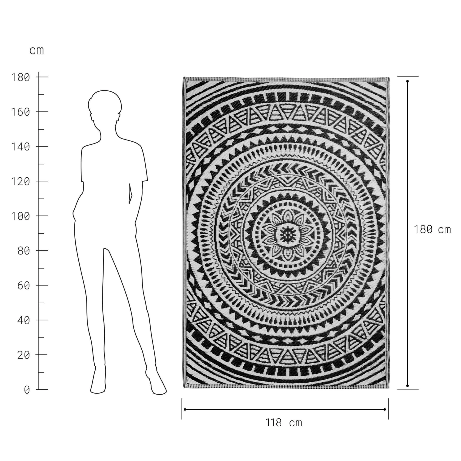 Weil Sie auf wohnlich und zugleich pflegeleicht stehen, legen Sie sich den modernen Colour Clash Outdoorteppich mit schwarz-weißem Circle-Muster und Bastteppich-Struktur zu Füßen. Und das nicht nur auf Ihrem Balkon oder Ihrer Terrasse, sondern gerne auch indoor im Wohnbereich. So läuft es sich drinnen wie draußen spürbar angenehm. Aus robustem Kunststoffgewebe, UV-beständig.