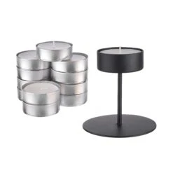 Kerzenhalter: Ø 10 cm, Höhe 10 cm, Kerze: 12 Stück, Ø 5,7 cm, Höhe 1,9 cm