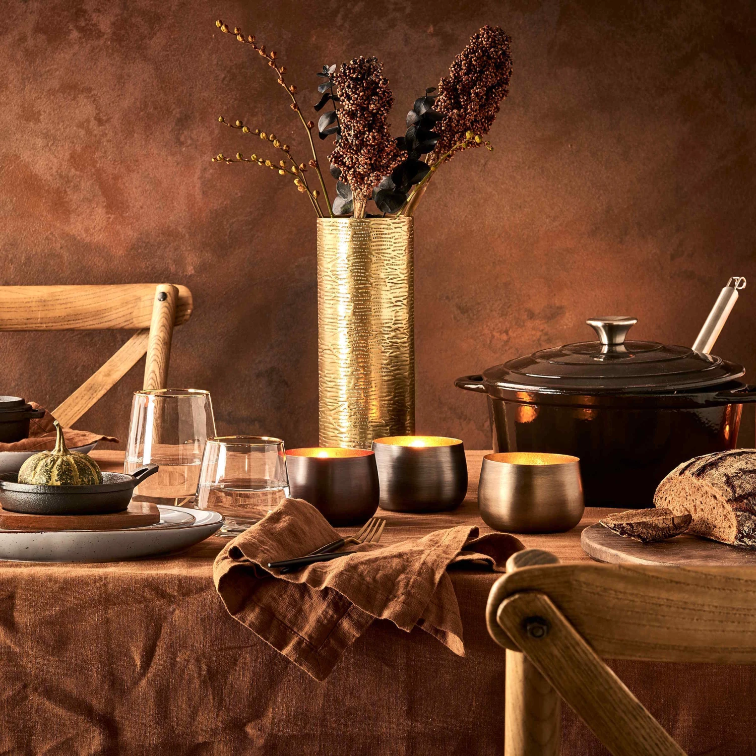 Die Aureo Vase aus Aluminium ist allen gewidmet, die sich an satten Goldtönen in ihrem Zuhause gar nicht sattsehen können. Seine strukturierte, leicht unebene Oberfläche sorgt für eine individuelle Optik und macht dieses schimmernde Deko-Objekt zum Hingucker. Passendes Tablett erhältlich, ideal zum Kombinieren.