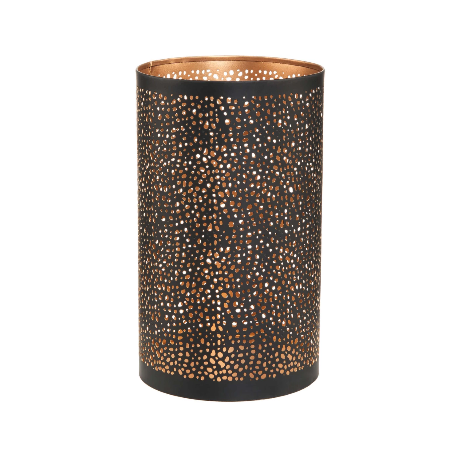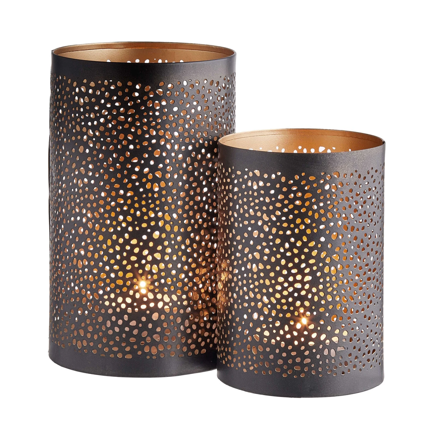 Ein Lichtblick aus Metall ist dieses Luminous Windlicht mit Punkt-Design im 2er Set in winterlichem Schwarz-Gold. Form und Farbe verbreiten Gemütlichkeit in Ihrem Zuhause und machen Ihnen die länger werdenden Abende auf dem Sofa, vor dem Kamin oder mit Freunden am gedeckten Tisch so richtig heimelig. Weitere Windlichter und Sterne aus der Luminous Serie erhältlich, ideal auch zum Kombinieren.